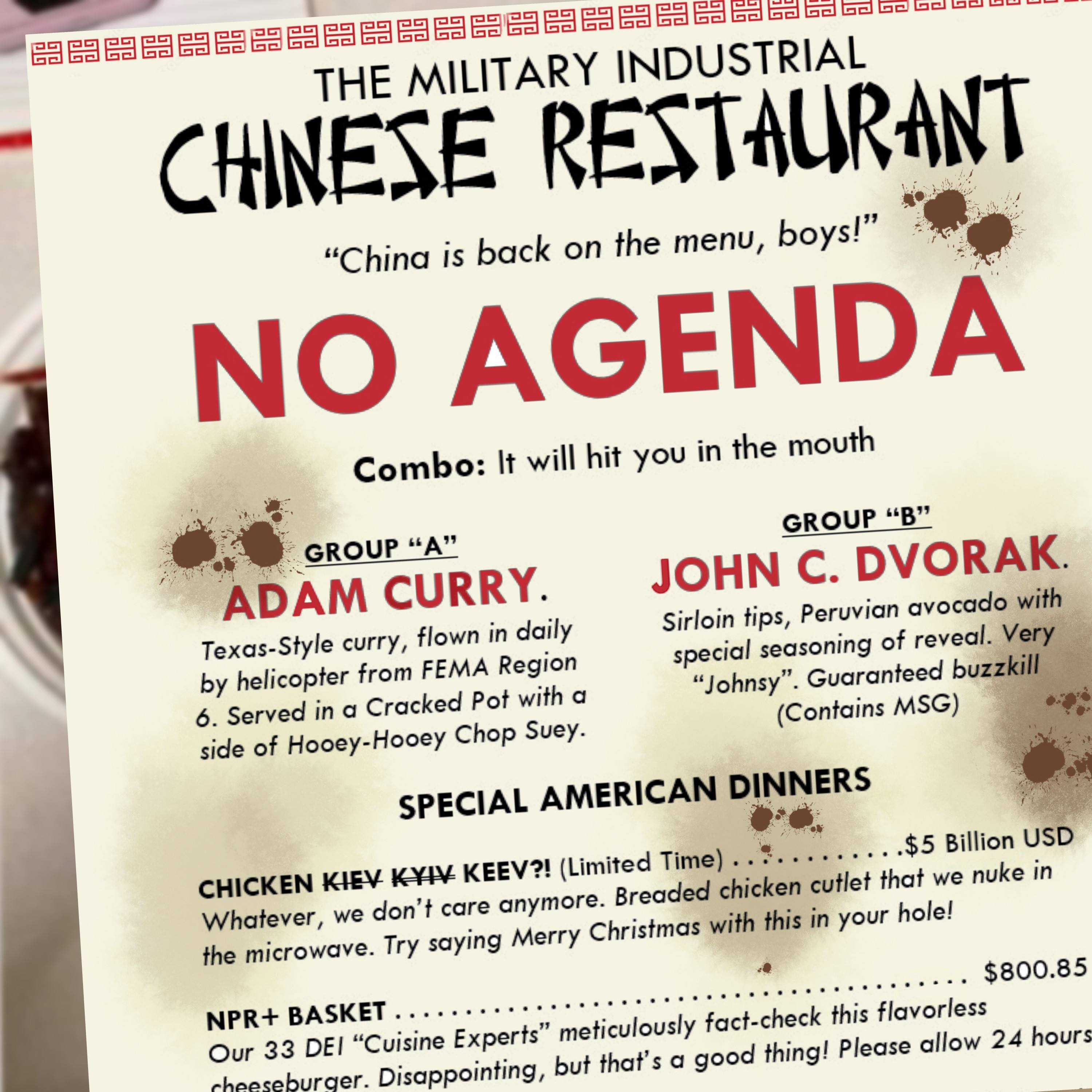 Celebrate Thanksgiving Raytheon-Style at the Military Industrial Chinese Restaurant! There's something for everyone, so dig in! (Tried to make the text more legible in the smaller format while preserving some of the joke. Apologies to Mimi as the "Too Many Eggs" gag was cut off. I'll be happy if it gets a giggle or two.)